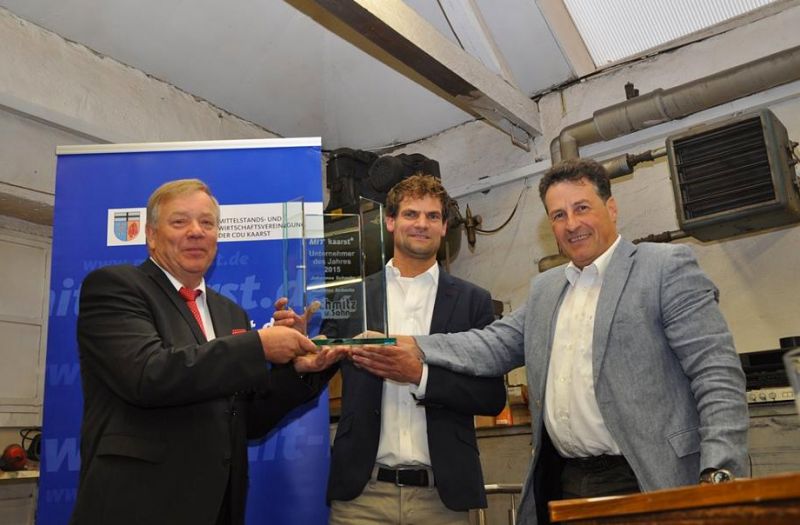 Ein Erfolg, der ohne Johannes Schmitz nicht möglich gewesen wäre: Und so war es klar, dass Vater und Sohn gemeinsam die Auszeichnung erhielten. "Für den gelungenen Generationenwechsel, durch den der Fortbestand des Unternehmens gewährleistet wird, haben die beiden Herren die Auszeichnung erhalten", macht der MIT-Vorsitzende Markus Steins deutlich. Schließlich handelt es sich bei "Schmitz und Sohn" um ein waschechtes Holzbüttger Unternehmen, das seit langer Zeit von Generation zu Generation weiter geführt wird. 1880 legte Huf- und Wagenschmied Johann Peter Schmitz an der Königstraße den Grundstein für eine Familiendynastie, die sich stetig weiter entwickelt hatte. Matthias Schmitz' Ur-Ur-Opa war mit einer kleinen Kutsche unterwegs, Landwirte waren seine Kunden. Nach dem Umzug wenige Meter weiter auf der Königstraße kamen Werkstatt und Wohnhaus dazu. Maschinen wie Kartoffelroder, Pflug und Erntemaschinen wurden verkauft und repariert.